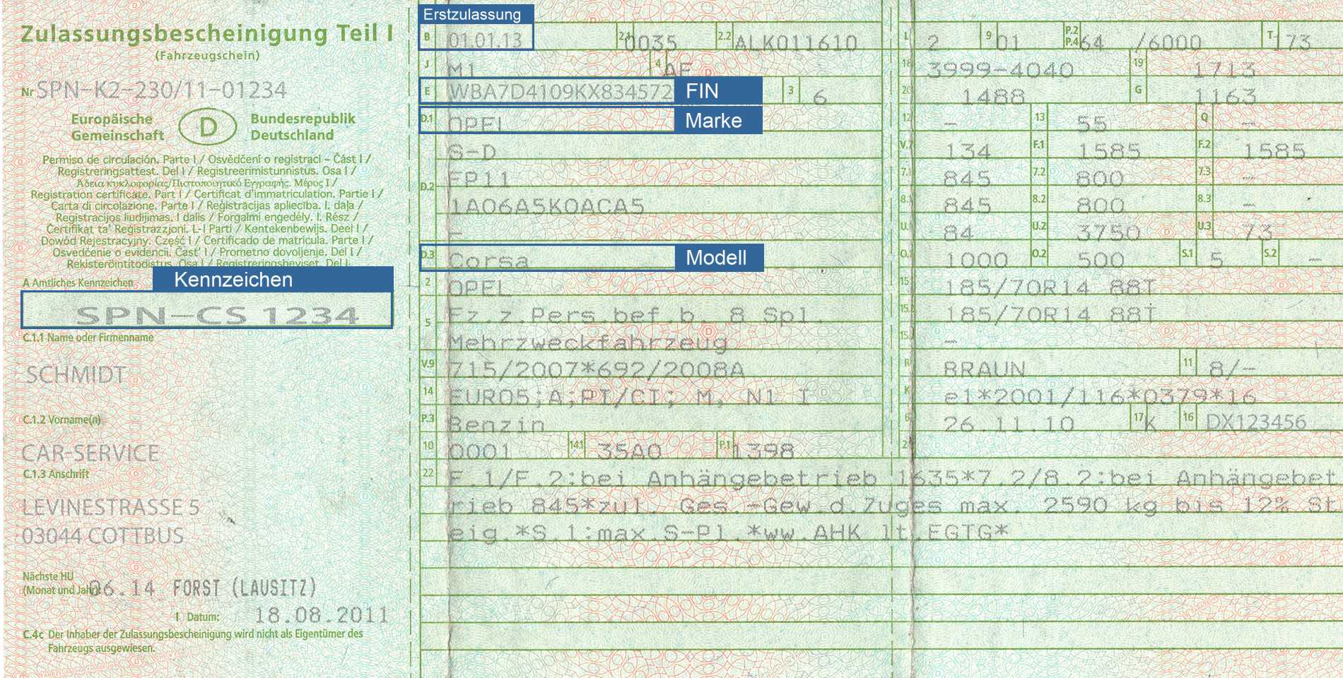 Mache ein Foto deines Fahrzeugscheins und lade es hier hoch oder gib deine Fahrzeugdaten manuell ein.
